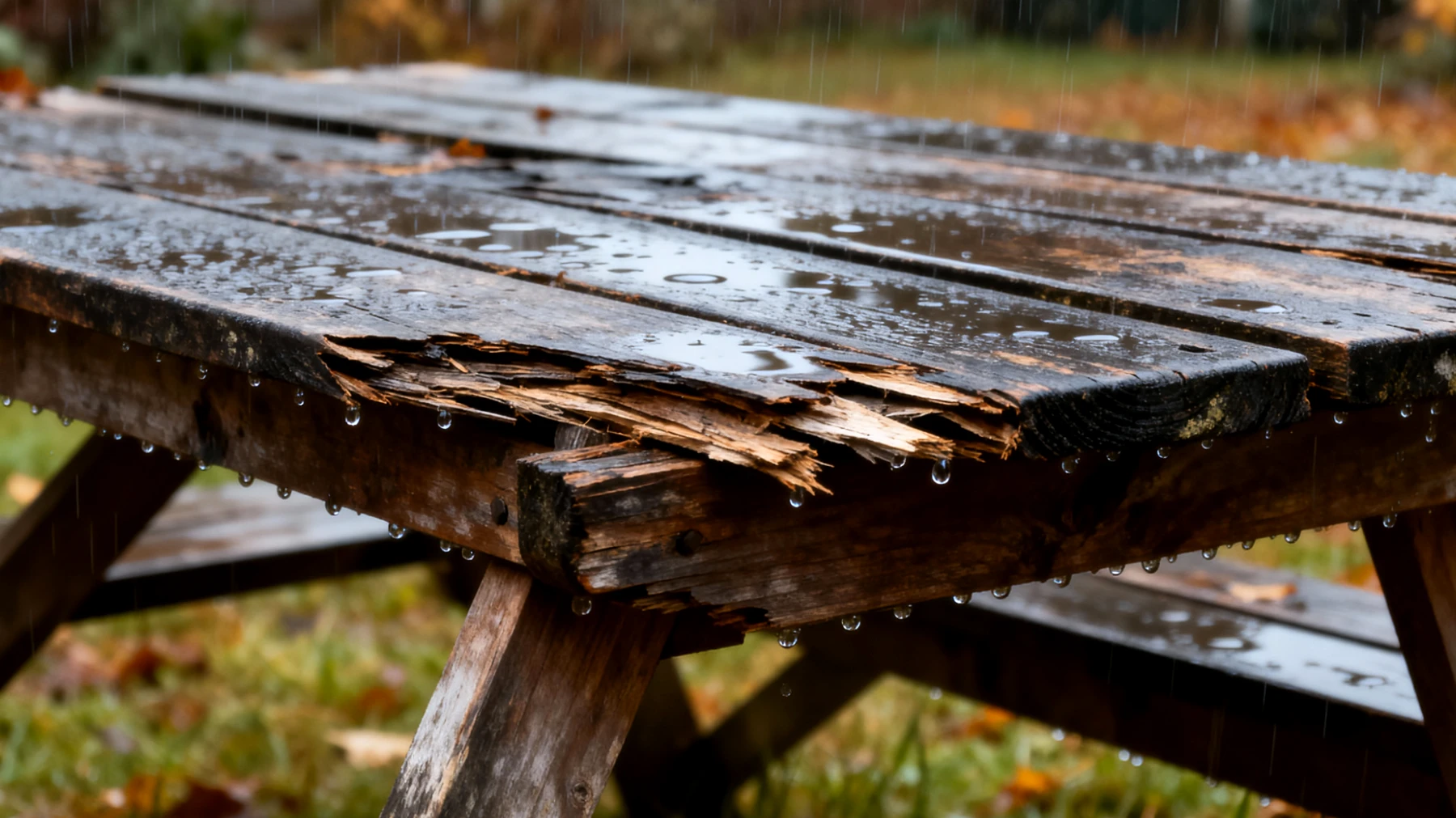 Die gute Nachricht: Diese Schäden sind keine unvermeidbare Alterserscheinung, sondern meist das Ergebnis weniger, aber entscheidender Pflegefehler. Wer versteht, was mit Holzfasern, Metalllegierungen und Polymeren bei Kälte und Feuchtigkeit geschieht, kann seinen Tisch viele Jahre unversehrt halten – ganz ohne komplizierte Routinen.